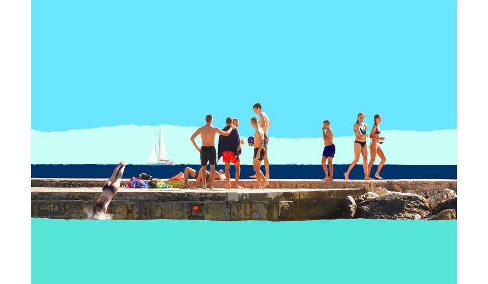 By flattening the sky, mountains and sea into pure pigment, she strips away the familiar markers of place and time. Its youth remembered through the prism of time: heightened, simplified, and unreal in its perfection.