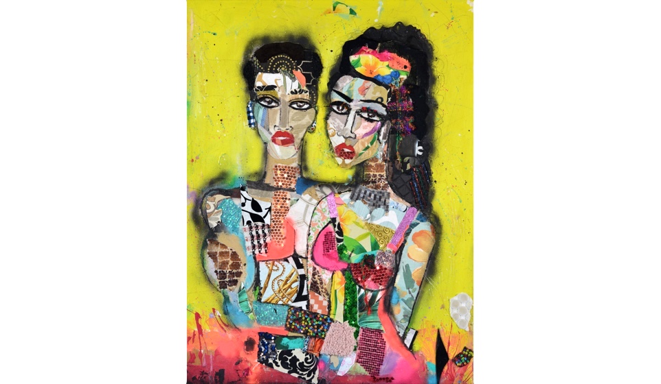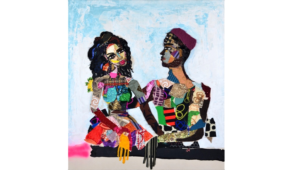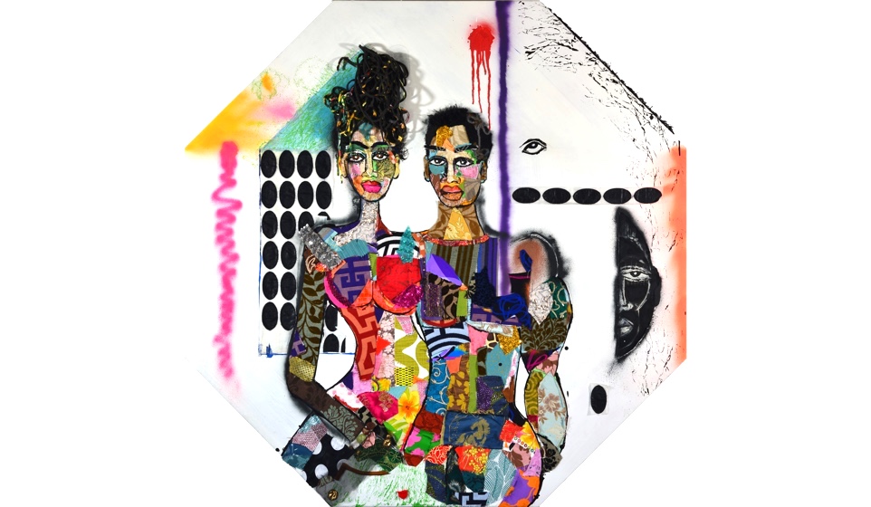 Miles Regis is known for his intricate mixed media paintings which often fuse image with text, making astute social and cultural commentary. His visual narrative is firmly based in the rich tradition and evolution of masquerades in his native Trinidad. Regis’s work is an emotional response to his life as a Black immigrant in America of 31 years. He has been painting commentary on race relations with a positive and unifying message his entire career.
