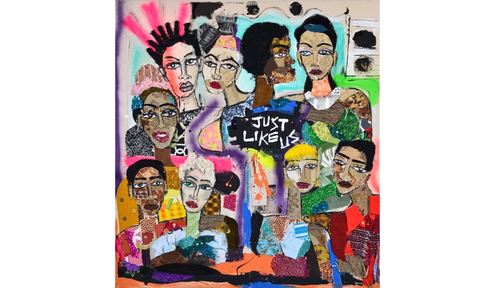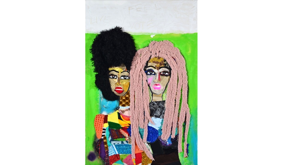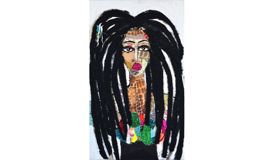 Miles Regis is known for his intricate mixed media paintings which often fuse image with text, making astute social and cultural commentary. His visual narrative is firmly based in the rich tradition and evolution of masquerades in his native Trinidad. Regis’s work is an emotional response to his life as a Black immigrant in America of 31 years. He has been painting commentary on race relations with a positive and unifying message his entire career.