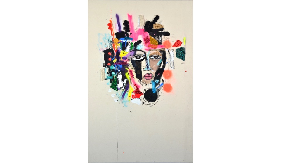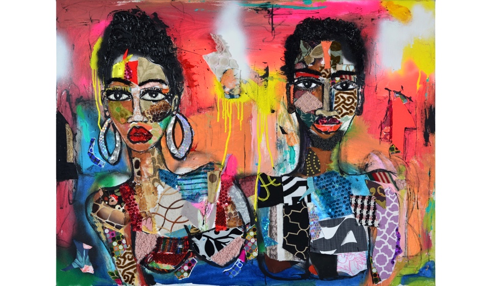 Regis grew up in a large artistic family, which nurtured his creativity. He excelled at painting, singing and writing. After a fledgling music career in Trinidad, he moved to Los Angeles. where he began his studies at USC in 1989. His creativity soared in this new environment which lead him to pick up painting again. Music is still a significant part of his creative process today. Poems and one-liners inspired by every day events incite his paintings. Regis’s canvases are a dynamic visual narrative that transforms the pain and ugliness of our contemporary world into an idiosyncratic beauty.