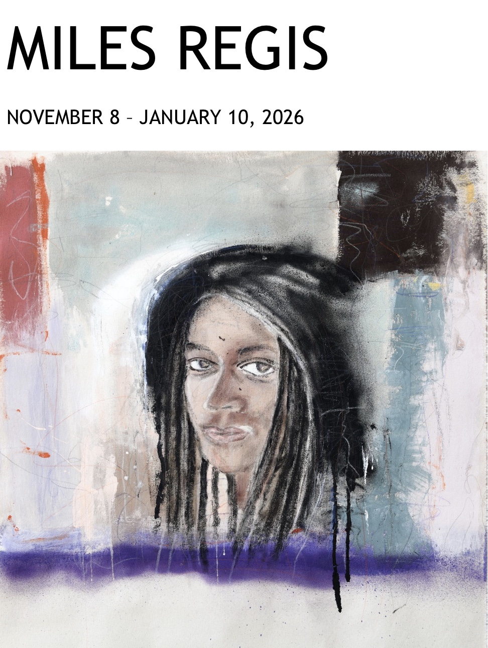 Miles Regis paints with earnest emotion and thoughtful social purpose, fusing figuration, abstraction, and text into rhythmic declarations of diverse identity and collective conscience. His musical energy — gestural brushwork, layered surfaces, material inventiveness, and graffiti-like inscriptions — vibrates with the syncopation of life itself, capturing the spirit of culture through symbolism and storytelling.